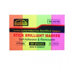 Giấy note 4 màu suremark 2cm x 5cm màu là loại giấy gồm nhiều tờ trong 1 xấp, chứa 1 lớp keo dán giúp bạn có thể dán lên bề mặt cần chú ý. Sản phẩm này rất tiện ích, giúp các bạn quản lý, tổ chức kế hoạch trong thời gian dài hạn, Ngay cả trong những lúc bận rộn nhất bạn cũng có thể ghi chú nhanh chóng.