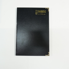 -Là sản phẩm sổ tập dạng sổ bìa da cứng màu đen với các góc bo tròn viền vàng trau chuốt, giấy kẻ ngang dày 100 trang. Sản phẩm thích hợp cho việc ghi chú nội dung quan trọng tại các cuộc họp tại văn phòng công ty.